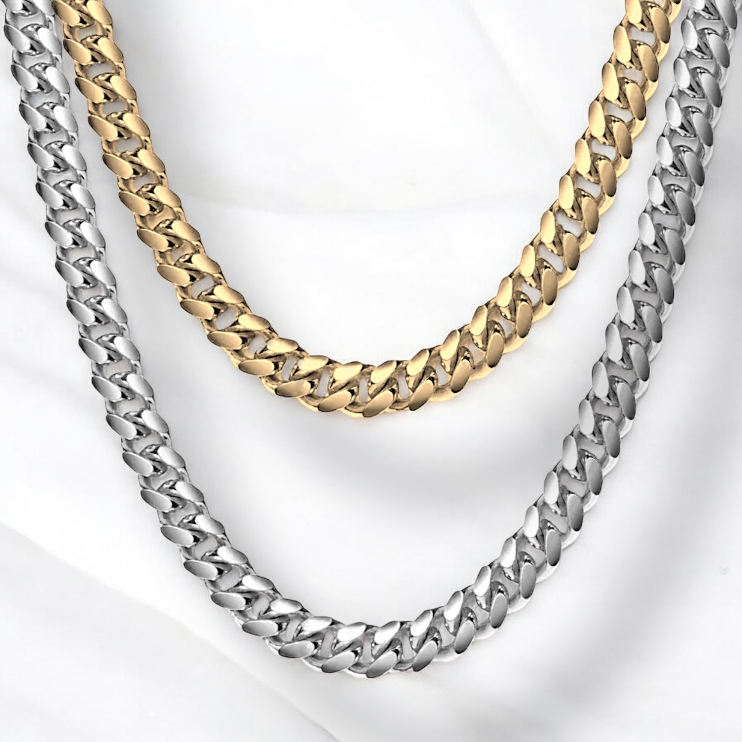 Cuban Chain necklaces in stainless steel Silver or Gold Men /Womens 7mm wide 55cm long P66