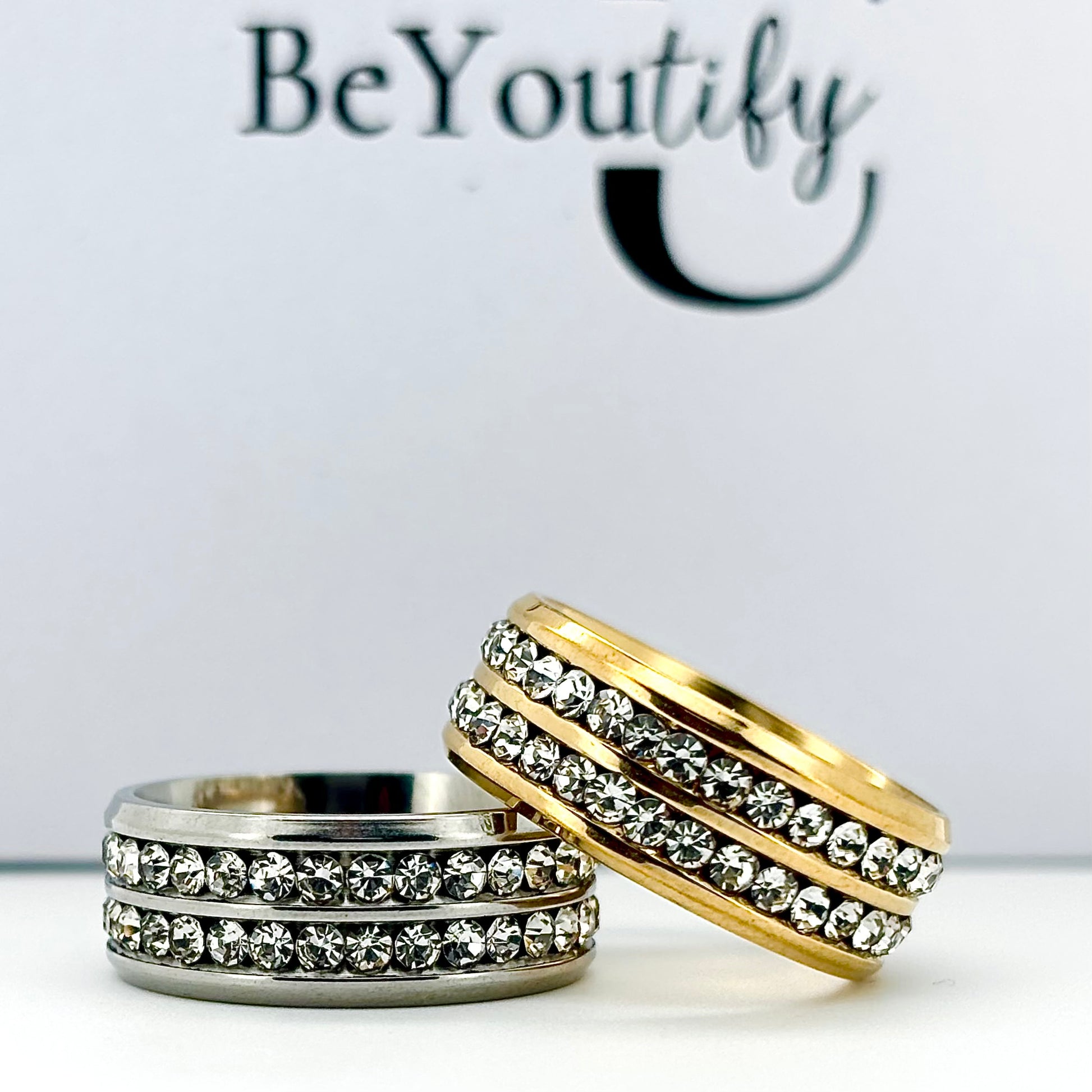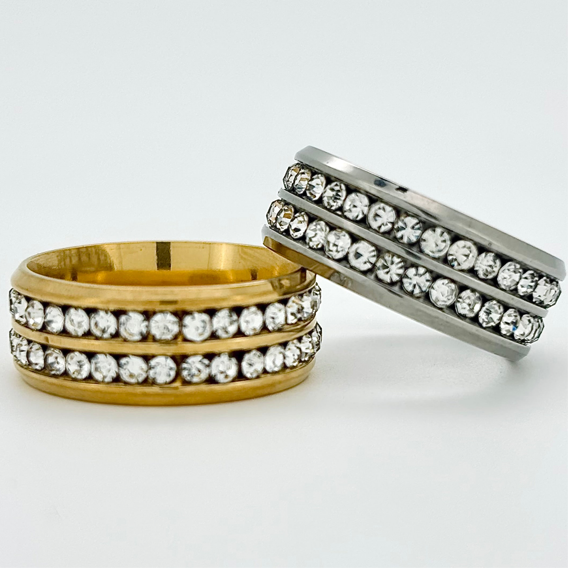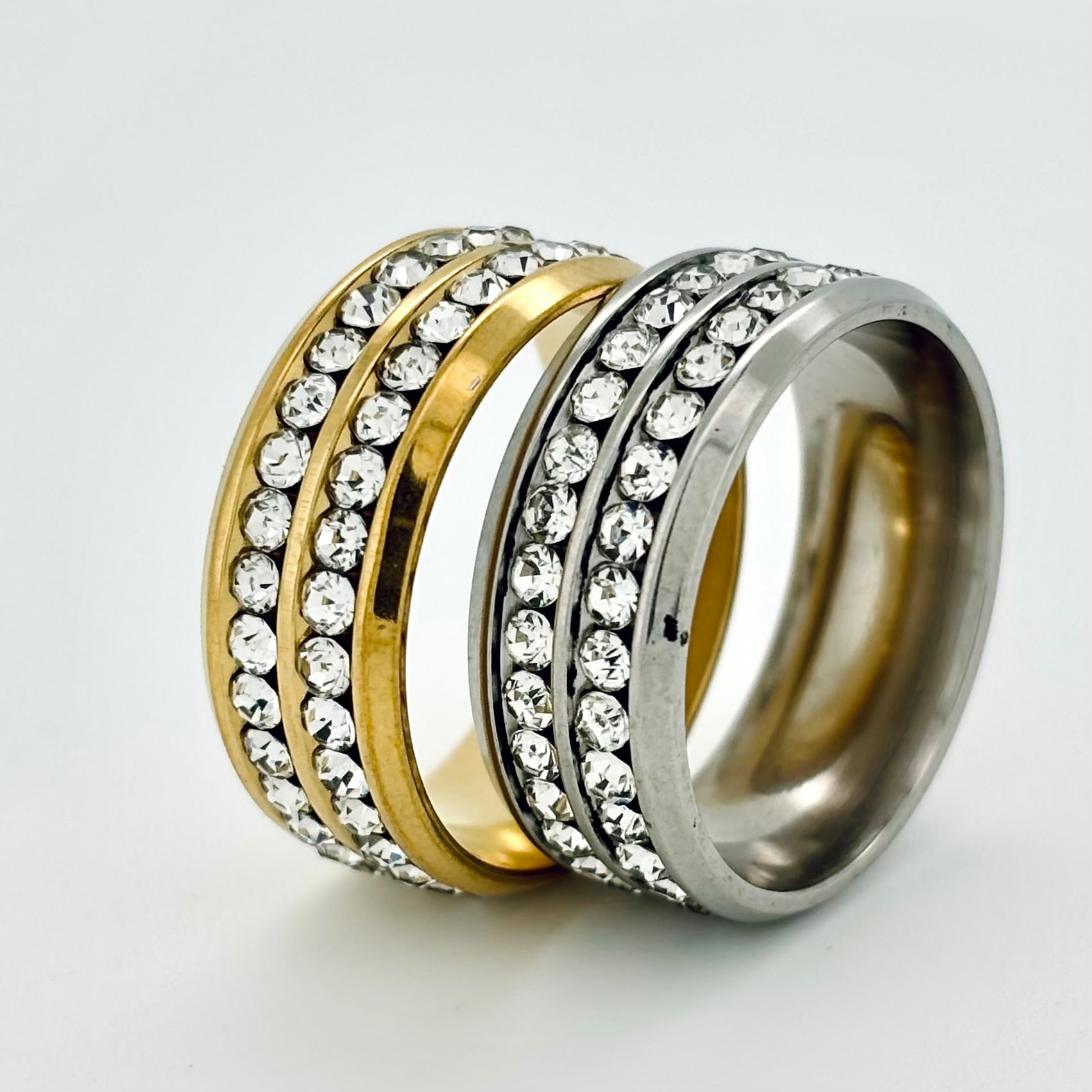 Double row stainless steel statement ring Silver Or Gold sizes N O P Q R S T U V W Male female unisex R11