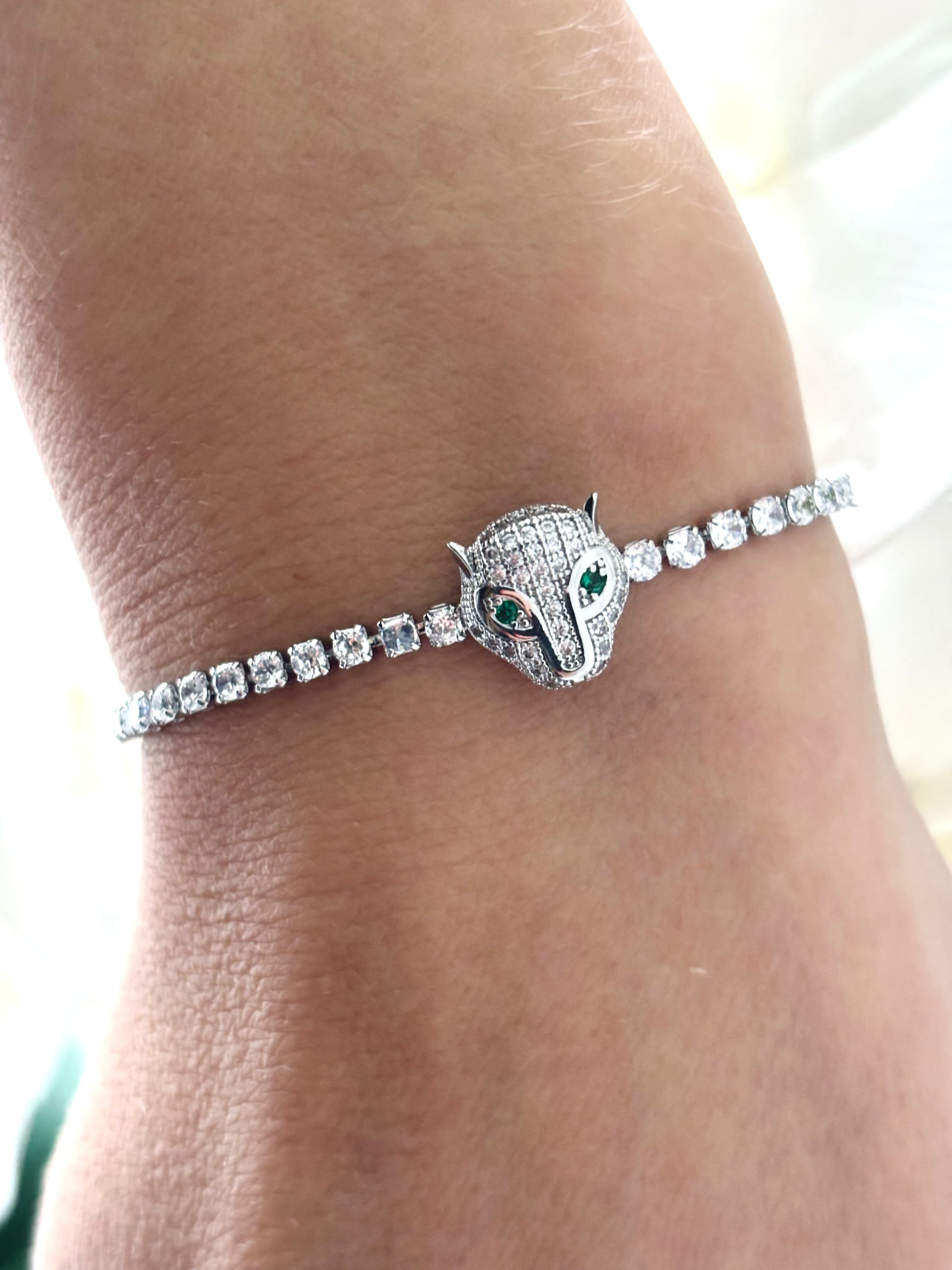 Green eye Crystal Panther adjustable bracelet