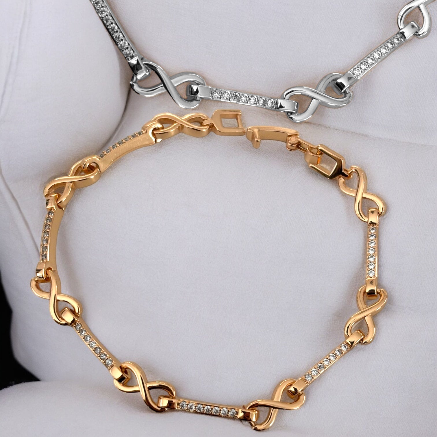 The non-natural crystal used in this bracelet gives it an unmatched shine and durability. The silver or gold finish makes it easy to match with any outfit, while the infinity symbol adds a deeper meaning that makes this bracelet perfect for gift-giving.