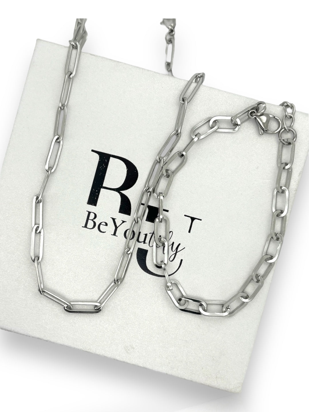 Paperclip chain bracelet and necklace set in silver or gold P57 &64